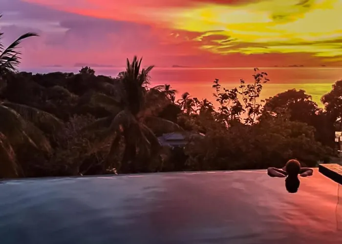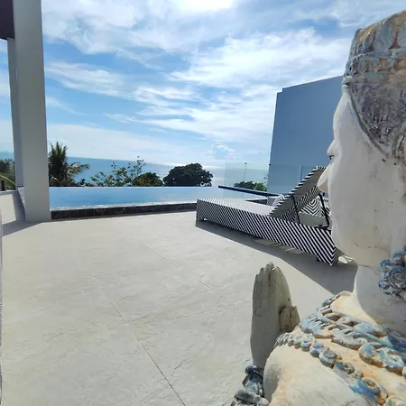 Die am Strand Villa Bianca, Piscine Privee A Debordement Vue Mer! Haad Tian liegt in etwa 4 km Entfernung vom Strand von Mae Haad und verfügt über eine Terrasse, von der aus man einen Küsten- Blick aufs Meer hat.